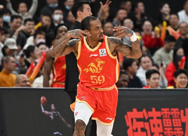 广厦新外援桑普森一条龙滑翔暴扣。