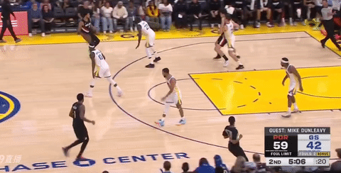 第一节勇士斯蒂芬-库里拿下7分,开拓者卡马拉拿下12分,首节战罢勇士25-39落后开拓者
